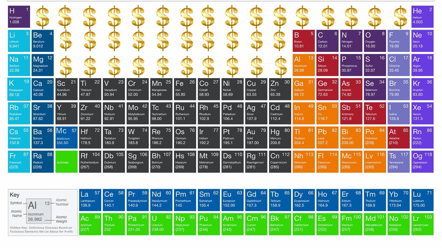 Eventually, the periodic table stopped functioning as a scientific organizer and became an economic infrastructure. Textbooks reinforced it. Corporate funded Universities built entire courses and degrees around it. Agencies wrote regulations around it. Government recommendations cited it. Careers depended on it. Once the table carried that much weight, it protected the substances on it more effectively than any PR department could. This was the true sense of the alchemists financial, they really can turn garbage into financial gold.